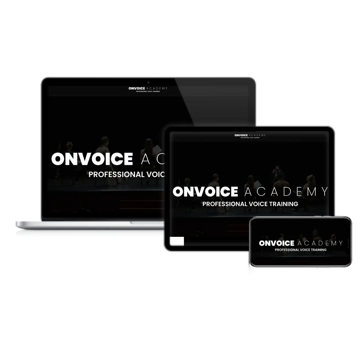 The rehearsal room. The green room. The hotel room. OnVoice Academy is fully responsive across mobile, tablet and desktop — designed to travel with your career wherever it takes you.